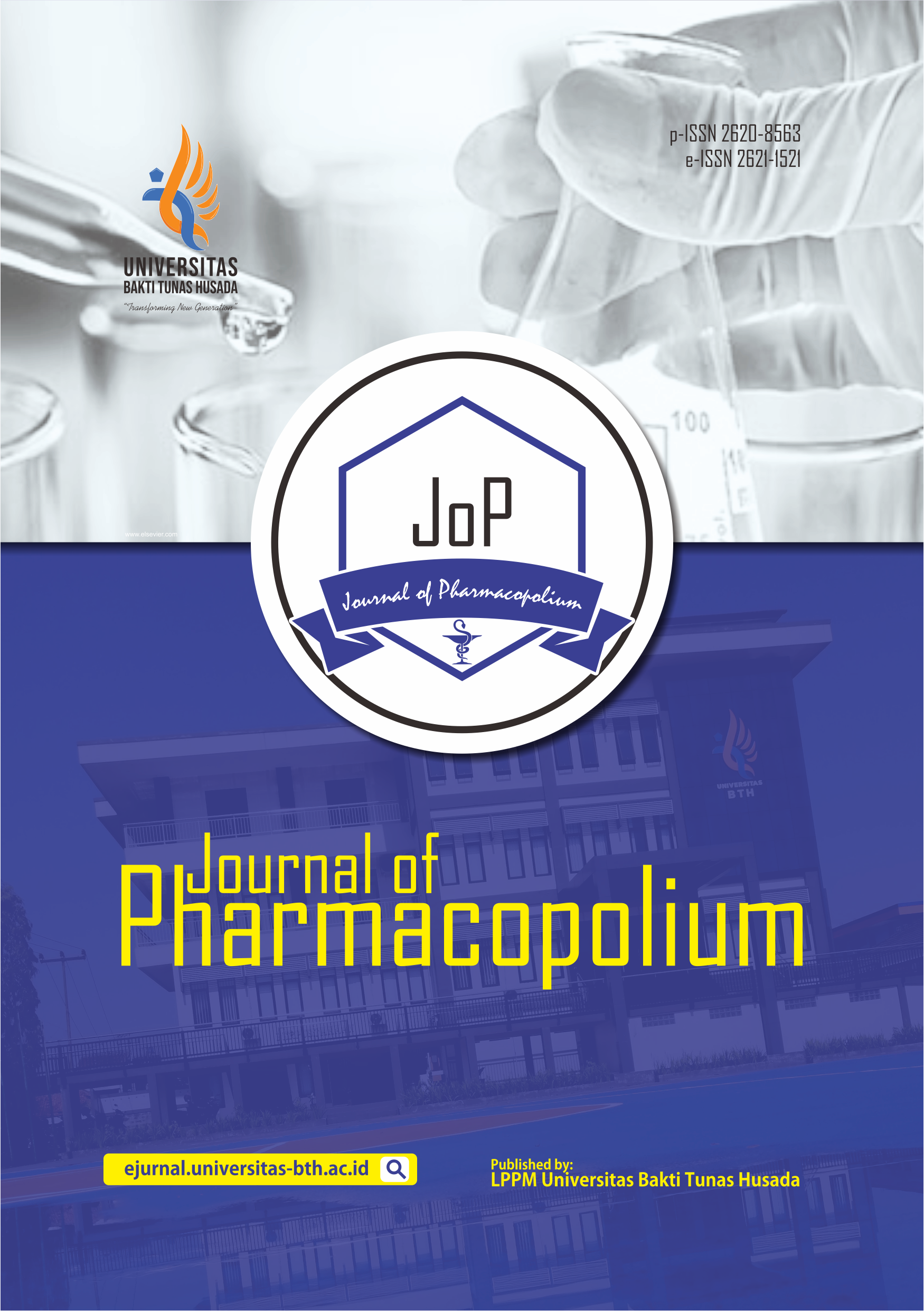 Journal of Pharmacopolium (JoP) merupakan jurnal yang dikelola oleh Lembaga Penelitian dan Pengabdian Masyarakat (LPPM) Universitas Bakti Tunas Husada yang bekerjasama dengan Fakultas Farmasi Universitas BTH Tasikmalaya dan resmi memiliki p-ISSN 2620-8563 (No. SK 0005.26208563/JI.3.1/SK.ISSN/2018.04) mulai terbitan Vol.1, No.1, April 2018 serta e-ISSN 2621-1521 (No. SK 0005.26211521/JI.3.1/SK.ISSN/ 2018.05). Jurnal ini terbit 3 kali dalam satu tahun (April, Agustus dan Desember).